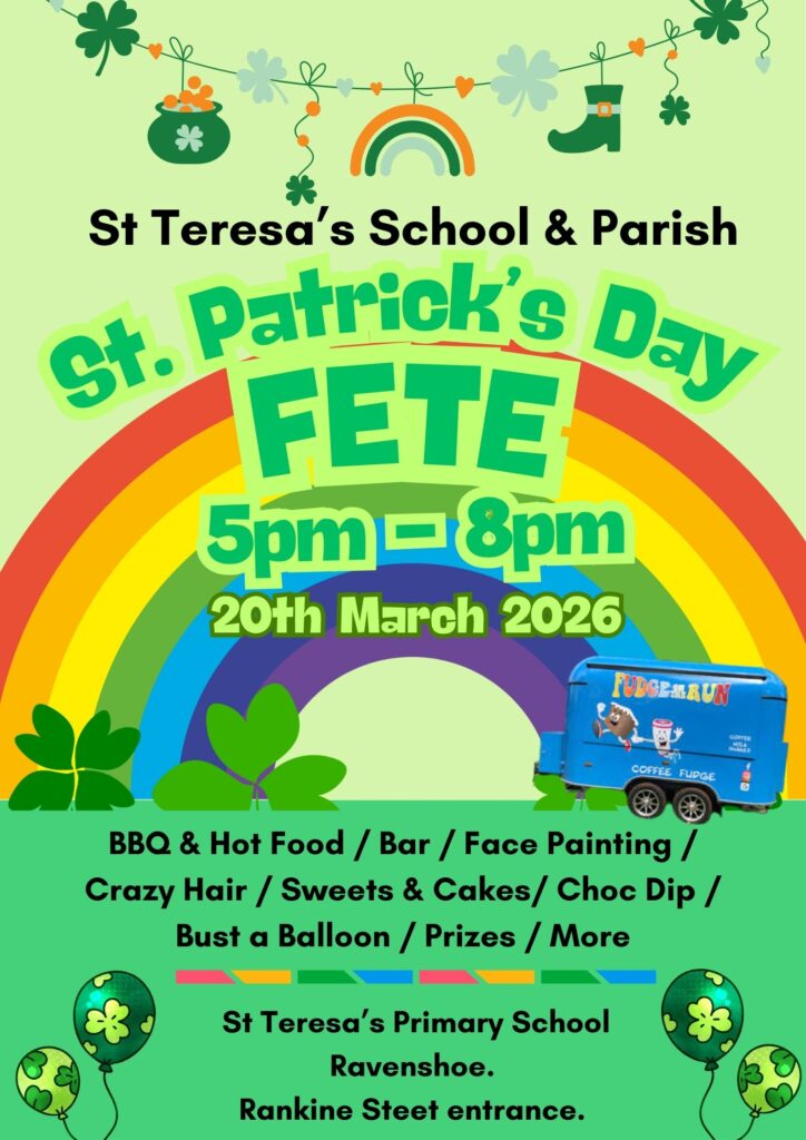 Come and celebrate the annual St Teresa’s School/Parish St Patrick’s Day Fete on the 20th of March.